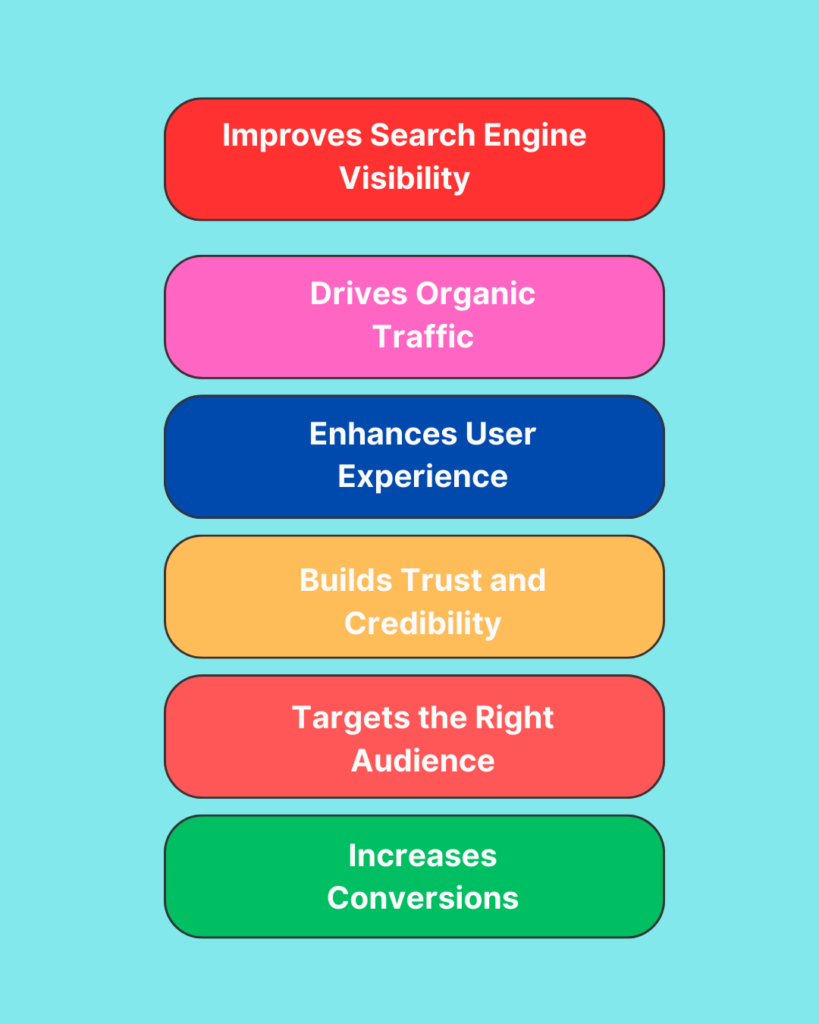 SEO-optimized content helps your website appear in search engine results when users search for relevant keywords. Higher visibility means more chances of getting clicks and visitors.